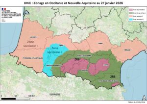 Cette évolution, rendue possible par une amélioration durable de la situation sanitaire, marque la première levée de zone réglementée dans le Sud-Ouest depuis le début de la crise. Grâce à une stratégie de lutte jugée efficace par les autorités sanitaires — combinant vaccination, surveillance renforcée et maîtrise des mouvements — la diffusion de la DNC est aujourd’hui contenue dans le Sud-Ouest. L’absence de nouveaux foyers et la stabilisation de la situation ont conduit les autorités à adapter le zonage. La partie concernée de la ZR6 bascule ainsi en zone vaccinale de type II (ZV II), traduisant un niveau de risque sanitaire désormais maîtrisé.