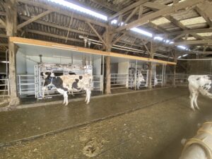 Le Merlin M2 est un robot tout électrique, qui fonctionne sur 220 V et bénéficie d’une protection par onduleur. « Le compresseur est nécessaire uniquement pour les portes, les vérins de décrochage et la purge de canne à lait. » La consommation électrique estimée atteint 12,4 kW pour 1 000 litres de lait. Le jour de la mise en route des robots, le cheptel a été scindé en deux lots. Les éleveurs ont poussé les vaches, un groupe après l’autre, deux fois par jour, pendant trois jours. Ils n’ont pas eu à passer de nuit blanche pour adapter le troupeau à la robotisation. « Le premier soir, nous avons quitté la stabulation vers 22h, après avoir poussé les vaches pour qu’elles se fassent traire deux fois par jour. En rentrant chez nous, nous avons entendu le robot, signe que certaines vaches avaient déjà compris le fonctionnement. Avec le Dac que nous utilisions auparavant, nos vaches étaient déjà habituées à rentrer dans une stalle pour manger des granulés. » Quatre mois après la mise en route, les vaches sont à 2,9 traites par jour, pour trois passages. Les éleveurs attribuent le bon fonctionnement du dispositif à l’absence de saturation des stalles.
