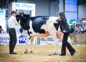 Eleveuse laitière dans le Finistère, maman de deux jeunes garçons et juge agréée Prim’Holstein France (PHF), Caroline Marsaud a été choisie pour juger le concours national Holstein lors du Salon de l’Agriculture 2026. « C’est l’une des rares femmes juges à fouler le ring parisien, après Geneviève Morel en 1993 », se félicite l’association Prim’Hosltein France. Cette fille d’éleveurs vendéens s’est très tôt passionnée pour « cette belle race laitière.» Une passion sans cesse cultivée au fil de ses apprentissages, en France et en Suisse. En 2005, la jeune femme a rejoint l’École des jeunes éleveurs de Battice (Wallonie, Belgique), « la référence internationale pour les jeunes adeptes de la Holstein », désireux de se former à la préparation des animaux de concours. Ses aptitudes au pointage lui vaudront une première place sur le podium lors du Trophée de meilleur pointeur au SIA 2006. Ancienne technicienne PHF, Caroline Marsaud a officié dans le domaine de la génétique, d’abord comme « commerciale en semences bovines nord-américaines puis classificatrice de 2013 à 2024.» Depuis l’automne 2024, Caroline Marsaud et son conjoint sont à la tête du Gaec du Lac Blanc à Bourg-Blanc, dans le Finistère. « Nous produisons environ 1 million de litres de lait cru, 100% dédié à la production des crêpes fourrées Whaou dont l’usine est située à 20 km de la ferme. »